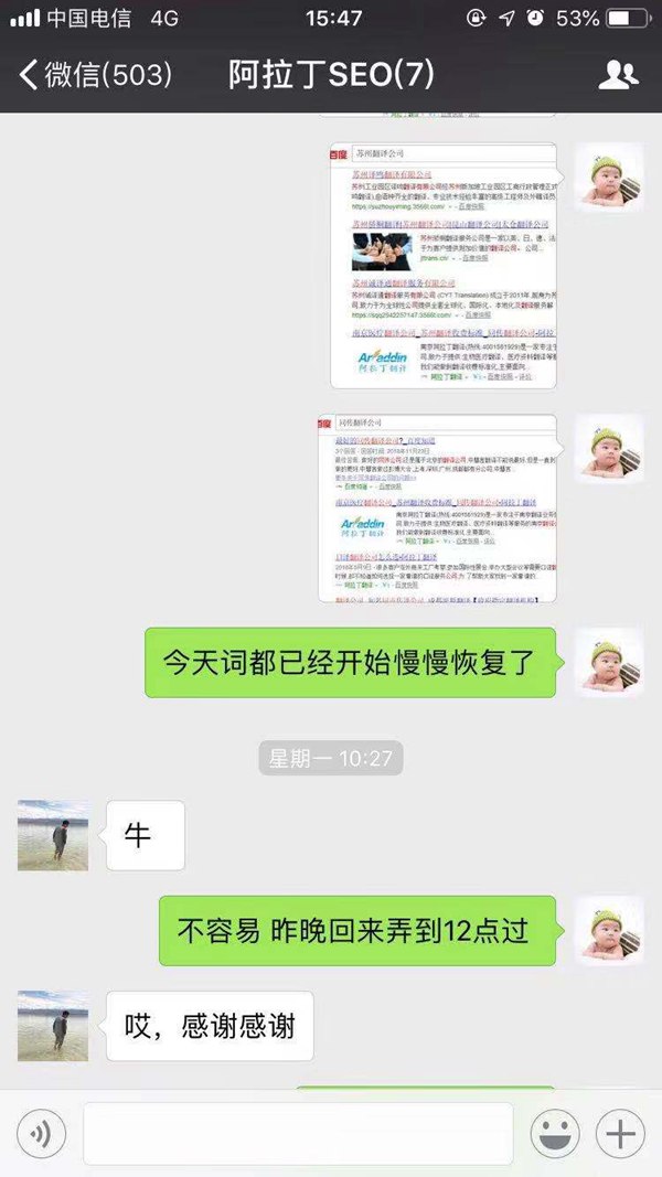这是南京的一家创业型公司,主要做留学和翻译的业务。因为最开始找了2家公司做优化,效果不是特别满意,后面找到的我们。