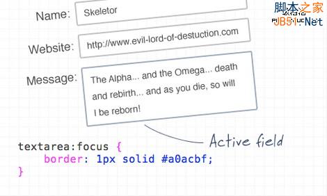 可以使用“focus”展现选中的文本区域处于动态中。也可以使用CSS样式,例如,突出的边框或者略有变化的背景色。