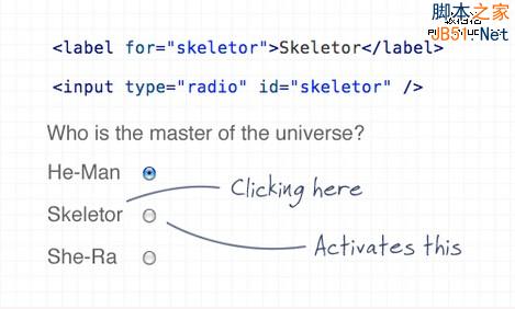 利用“for”属性允许用户单击label也可以选中表单中的内容。这可以扩大复选框和单选框的点击区域,非常实用。