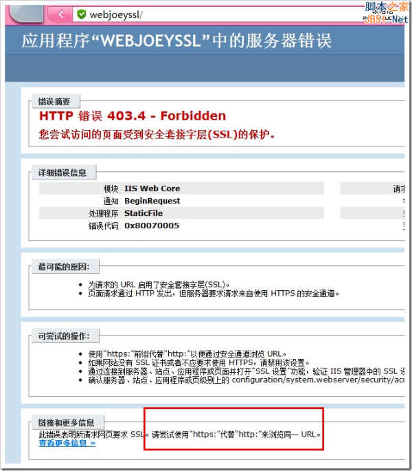 但是这样会出现一点问题,你访问//webjoeyssl ,浏览器会报错