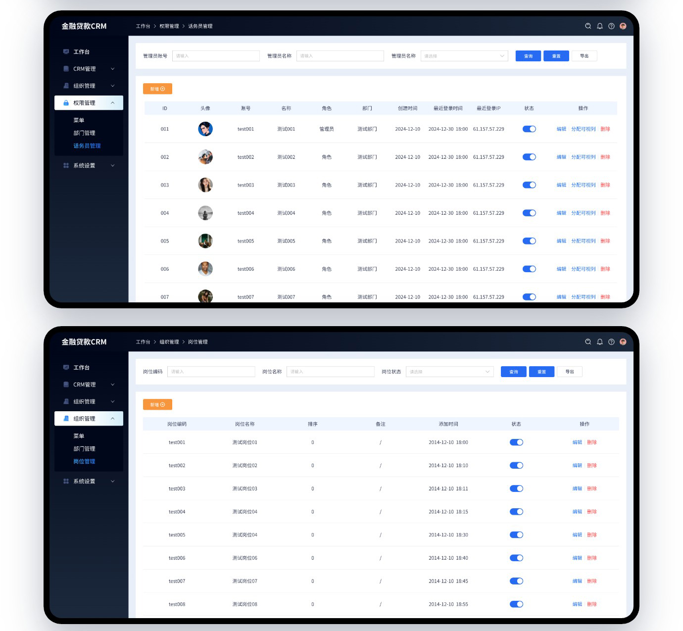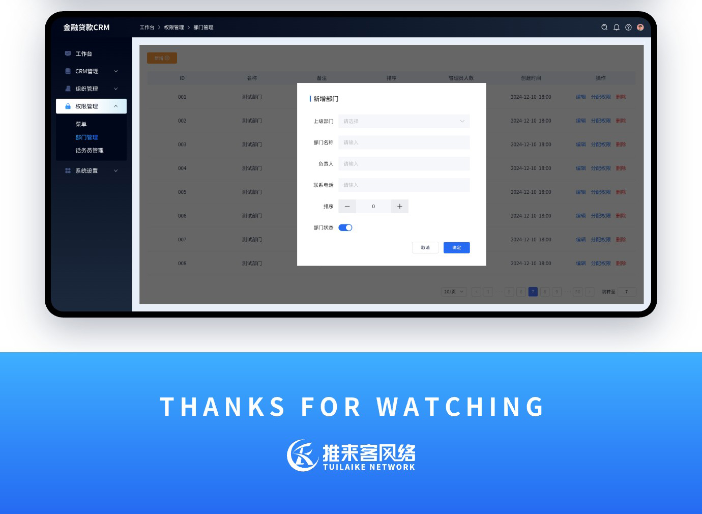 这是给成都一客户开发的贷款CRM管理系统,数据来源对接了第三方的API,每天能出上万条数据,出了数据后公司在安排电销人员进行回访,回访后对客户的意向状态进行标记,标记后进入到自己的客户池进行跟进。同时系统也有公海,抢单等功能。