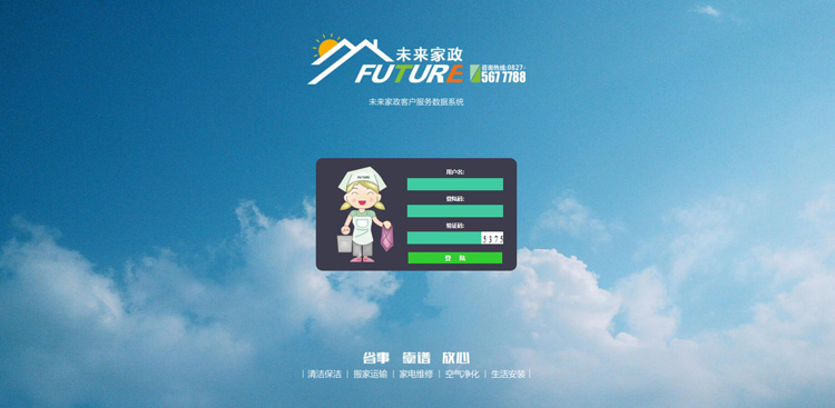 未来家政管理系统,该项目客户和要求比较简单,对界面无任何要求,只要求实现相应功能即可。可以进进行在线支付,用户注册后绑定手机信息,能对订单详情信息进行查看,可以统计出勤率等。