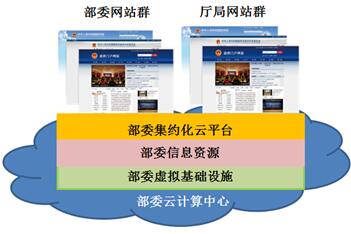 垂管部门的网站群往往是全国大集中建设,且通常已有较好的集约化基础,所以垂管部门的网站应用支撑平台集约化建设可继续沿用大集约化的思想,即服务集约、平台集约、数据集约、管理集约,基于部委的云计算中心部署统一应用支撑平台,全国本系统内的网站均在本平台上进行建设、运营和管理。