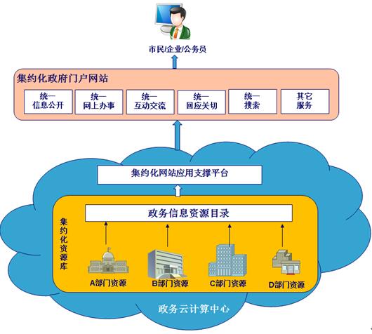 基础设施集约化是最基本的集约化方式,解决机房和设备重复投资、重复建设、资源利用不足造成浪费等问题。如果基础设施集约化以云计算中心的形式建设,建议一级政府(如:省、部、市)建设云计算中心,为各网站主办单位提供虚拟设施资源。形式的云服务来实现节约。资金、提高设备利用率、节能减排效果。目前,此类集约化采用的云计算技术和管理模式已经成熟,有成功经验,但安全风险也将集中。