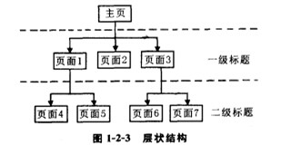 分层结构类似于目录系统的树结构,如图1-2-3所示。它从网站文件的永利最大(官方)网站开始,分为一级标题、二级标题等,逐步细化,直至提供初始浏览者的具体信息。
